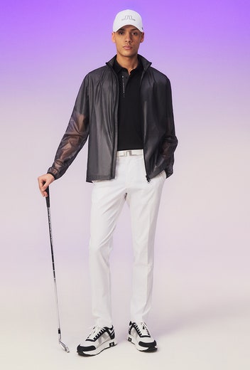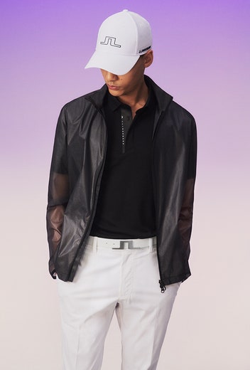 J.Lindeberg are experts when it comes to performance outerwear and this Tyler 2.5 layer wind jacket is one of the more unique pieces from the PS25 range. It has been made using the lightweight wind resistant fabric that JL have to offer, helping prevent wind chill with a degree of water repellent protection during a light rain shower. The soft and quiet feel of the fabric feels almost weightless, coupling with the high degree of stretch to provide the utmost flexibility for freedom of movement through the golf swing. Finally, an all over honeycomb print marries with a hint of translucency for an ultra-unique aesthetic & helps to make this one of our favourite styles from the Pre-Spring '25 collection.